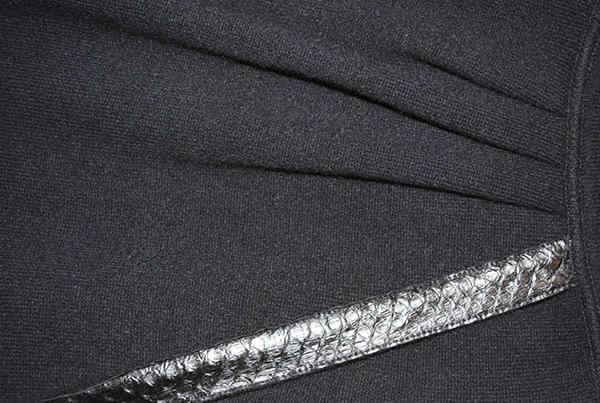 Self Maglieria produce soprattutto capi con inserti di tessuto maglia e pelle principalmente per il settore sportivo. I materiali lavorati sono fibre naturali, cashmere, misto cashmere e filati tecnici.
